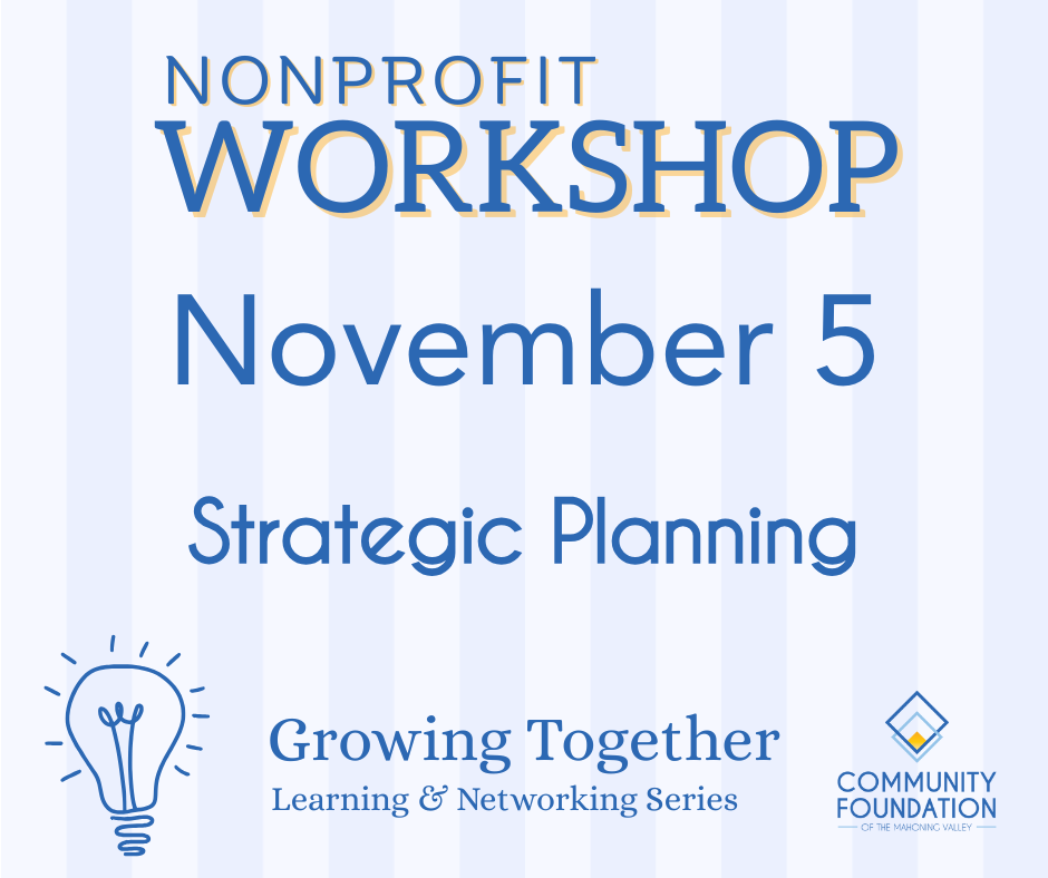 From short-term work like adding new programs to long-term projects like succession planning, a strategic plan can help your nonprofit ensure that the work is impactful and mission-aligned. Join the Community Foundation for this free workshop that will lay out what makes a good strategic plan and steps you can take on your own!